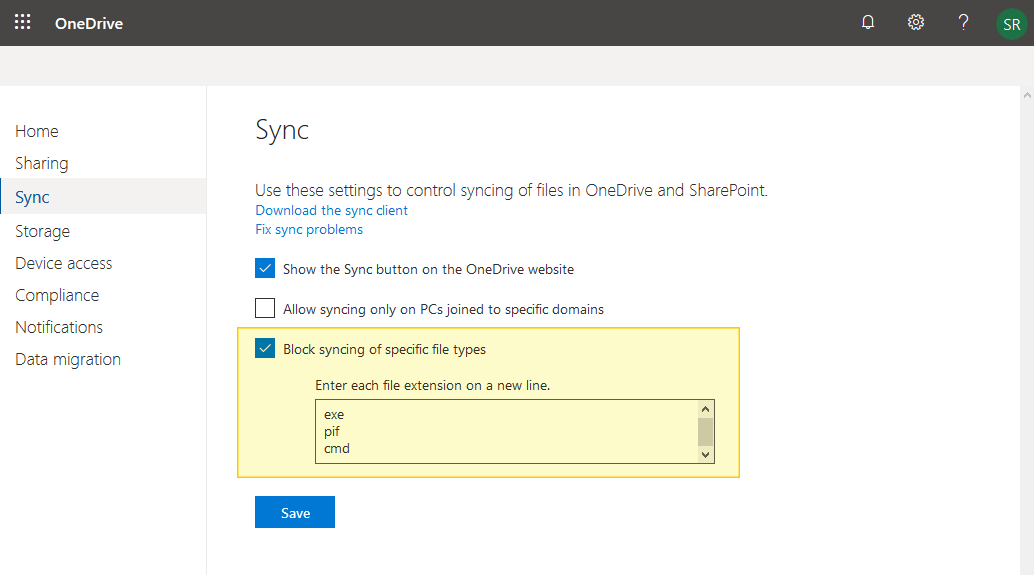 Click save and you re done. Click the pause syncing option. At this point only domain joined pcs windows and macos should be able to synchronize those onedrive for business files.