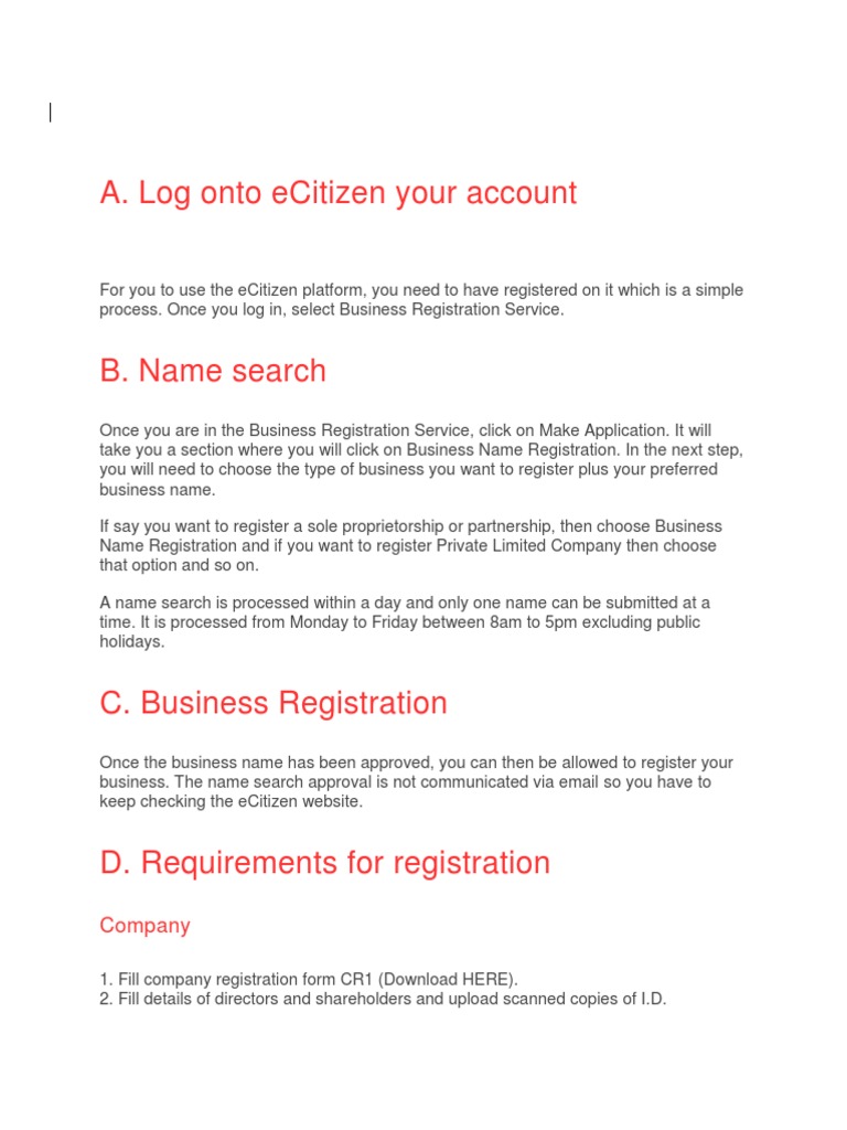 Ecitizen business registration certificate. Kenyan citizens and foreign residents can now apply for government to citizen g2c services and pay via mobile money debit cards and ecitizen agents. Registration of business name. R egistering a company through ecitizen in kenya has become very easy in kenya in the past 10 years.